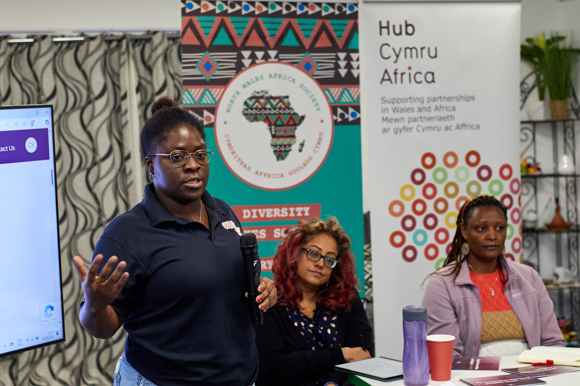• As we close the event, we welcome ZimVoices. They are a choir of five Zimbabwean women, now living in Wales, performing traditional stirring and riotous Southern African anthems, mostly from Zimbabwe.